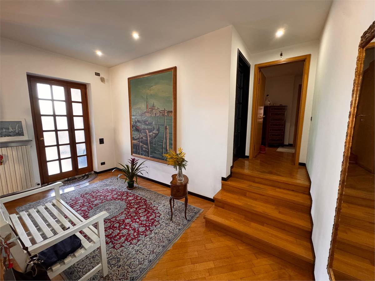 Cabiate, zona confine con Seregno, proponiamo in vendita porzione di signorile villa bifamiliare, caratterizzata da ingressi carraio e pedonale indipendenti che garantiscono autonomia. L’abitazione si sviluppa principalmente su un unico livello, offrendo spazi comodi e ben distribuiti. L’ingresso conduce a un ampio e luminoso soggiorno impreziosito da camino, affiancato dalla zona pranzo e dalla cucina abitabile. Questi ambienti affacciano direttamente su una piacevole veranda coperta e sul giardino privato di circa 750 mq, uno spazio ideale per vivere momenti di relax all’aperto. Tre gradini conducono alla zona notte, composta da tre camere da letto e da due bagni finestrati, che garantiscono comfort e funzionalità per tutta la famiglia. Al piano interrato si sviluppa una spaziosa taverna con camino, perfetta come ambiente conviviale o area hobby. Completano il piano diversi locali accessori tra cui locale tecnico, cantina e lavanderia, con collegamento diretto al box doppio. La villa si presenta in ottime condizioni interne. La facciata in mattoni a vista conferisce carattere ed eleganza all’immobile, mentre gli interni sono rifiniti con parquet nella zona giorno e nella zona notte (ad eccezione di cucina e bagni). L’abitazione è inoltre dotata di serramenti in legno con doppio vetro, impianto di allarme, impianto fotovoltaico, impianto addolcitore per acqua sanitaria, caldaia nuova a condensazione con boiler d'accumulo, elementi che contribuiscono a garantire comfort, sicurezza ed efficienza energetica.