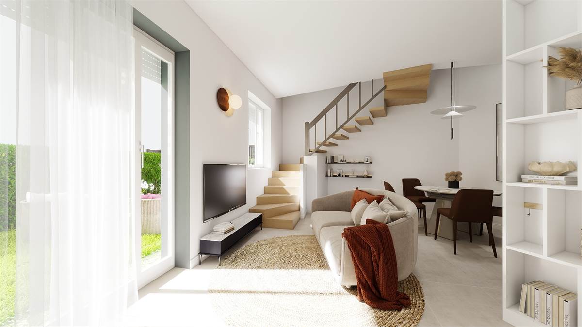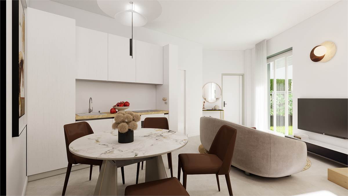 Meda, in zona al confine con Cabiate, proponiamo una palazzina di nuova realizzazione, progettata per offrire elevato comfort abitativo e qualità costruttiva. Tutti gli appartamenti saranno realizzati con finiture e impianti di alto livello: ogni unità sarà dotata di porta d’ingresso blindata, mentre i serramenti in PVC con triplo vetro garantiranno un eccellente isolamento termico e acustico, assicurando benessere e tranquillità in ogni ambiente. Particolare attenzione è stata riservata al comfort abitativo: ogni abitazione sarà completa di impianto di aria condizionata, riscaldamento autonomo a pavimento per una diffusione uniforme del calore, impianto domotica e ventilazione meccanica. Sarà inoltre possibile personalizzare le finiture interne, scegliendo materiali e dettagli in base ai propri gusti ed esigenze. L’intera costruzione sarà realizzata in classe energetica B, garantendo un ottimo equilibrio tra efficienza e consumi. La palazzina ospiterà diverse soluzioni abitative, pensate per soddisfare esigenze differenti. APPARTAMENTO 3) Bilocale sito al piano terra disposto su due livelli e così composto: ingresso, soggiorno con angolo cottura con accesso al giardino privato, bagno e scala interna che conduce al piano primo dove si trova la camera matrimoniale, uno studio e il secondo bagno. Incluso nel prezzo un posto auto e una comoda cantina.