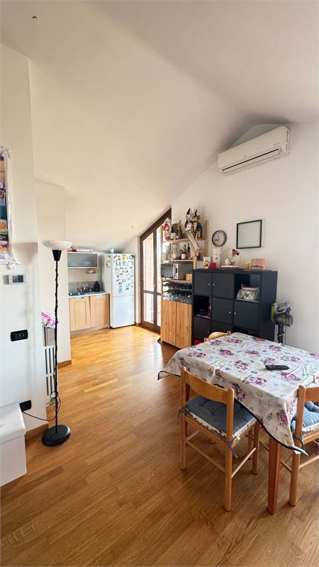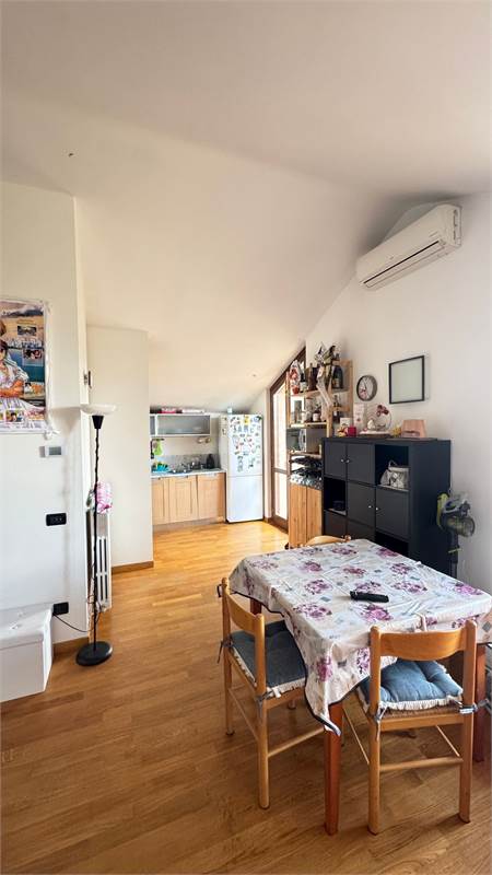 In palazzina con facciata in mattoni a vista edificata nel 2003, proponiamo in vendita un luminoso bilocale situato al secondo ed ultimo piano, senza ascensore. L’ingresso si apre sulla zona giorno, accogliente, dove soggiorno e cucina a vista si affacciano su un ampio terrazzo, ideale per pranzi all’aperto o per godersi momenti di relax. La camera matrimoniale è spaziosa e ben illuminata, mentre il bagno, completo di box doccia, risulta comodo e ben rifinito. L’immobile è dotato di buone finiture interne: parquet in tutti gli ambienti, infissi in legno con doppi vetri, aria condizionata e un generale stato di manutenzione curato. Completano la proprietà un box singolo e un posto auto, entrambi inclusi nel prezzo.