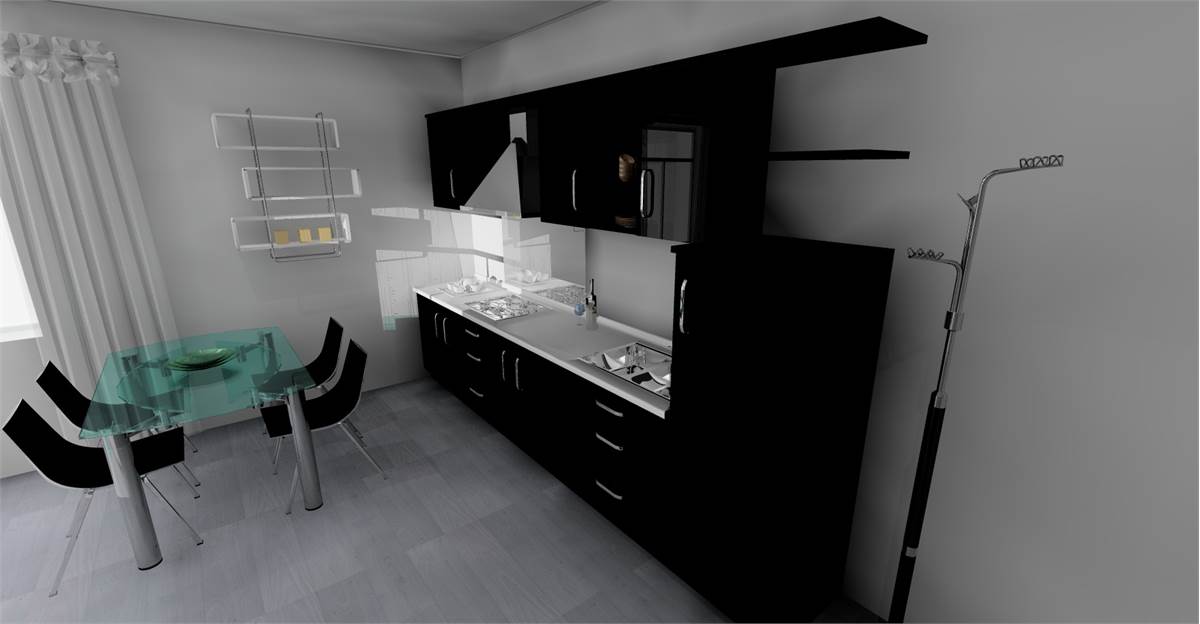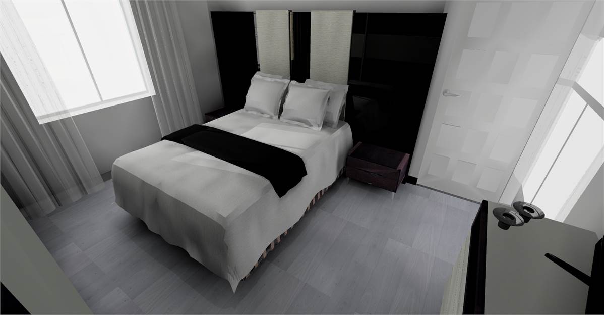 L’ingresso apre su una zona living accogliente con cucina a vista, predisposta per l’aria condizionata. La zona notte comprende una camera matrimoniale, una cameretta e un bagno finestrato con raffinata doccia in ardesia 80×100. Un balcone completa l’abitazione.